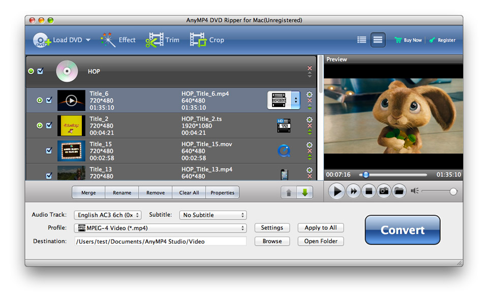The DVD Ripper for Mac is designed for Mac users to convert DVD to video on Mac with no limitation. It's the best DVD Ripper for Mac which can convert DVD movies to any video on Mac like MP4, MPEG, M4V, AVI, WMV, etc. Also it can extract audio tracks from DVD movies and save them as MP3, M4A, WAV, ACC, AC3, AIFF and more on Mac.