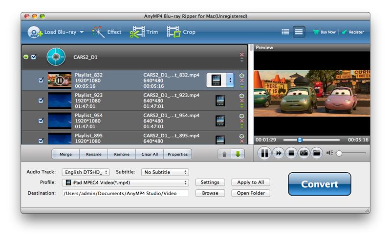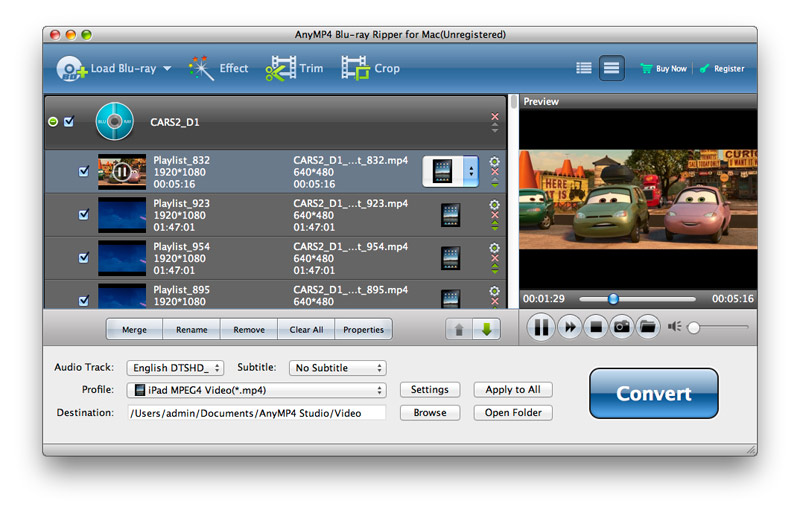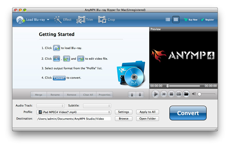 If you have a Blu-ray movie, and you want to share it with your friends on the Internet, AnyMP4 Blu-ray Ripper for Mac is the right software for you, and it also acts as the best Mac Blu-ray to WMV Converter. Because it can help Mac users rip homemade Blu-ray to various video formats such as MP4, MKV, VOB, FLV, SWF, AVI, WebM, and even HD videos with great high quality. So you can enjoy them on various portable devices like iPod, iPad, Galaxy S3, Google Nexus, etc. Besides, it owns some powerful video/audio editing functions, so you can adjust the video effect as you like, trim the video to your needed length, crop the video frame, add watermark, adjust video/audio settings, etc. Now this guide will help you how to convert homemade Blu-ray to WMV with this best Blu-ray to WMV Converter on your Mac.