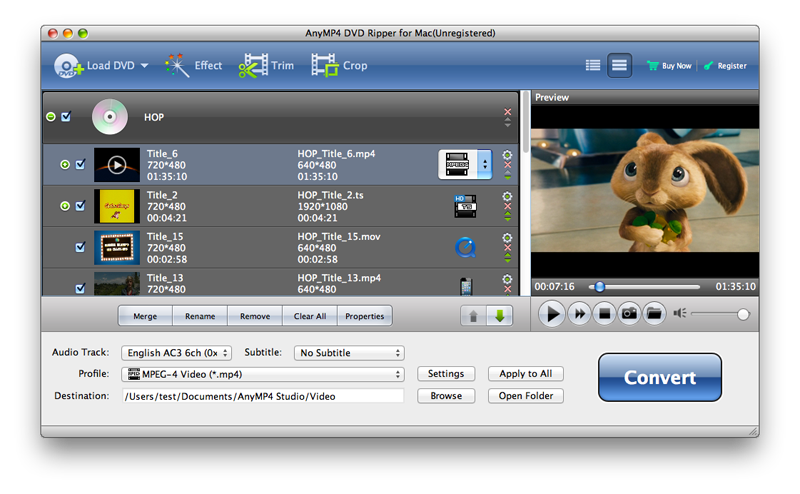 AnyMP4 Mac DVD Ripper owns powerful ripping functions. It can rip DVD to any popular video and audio as you like. Besides powerful ripping functions, it's equipped with creative and flexible editing functions for you to get perfect video. You're enabled to trim video length, crop the video frame, merge several clips into one file and add text/image watermark to the video. With built-in player, you can preview the source and targeted video at the same time. Also, you can capture your favorite DVD movie image to meet your needs. The following is the detailed information of ripping DVD to MPG on Mac with the best Mac DVD Ripper. At first, it's necessary to free download the program and install it on your Mac.