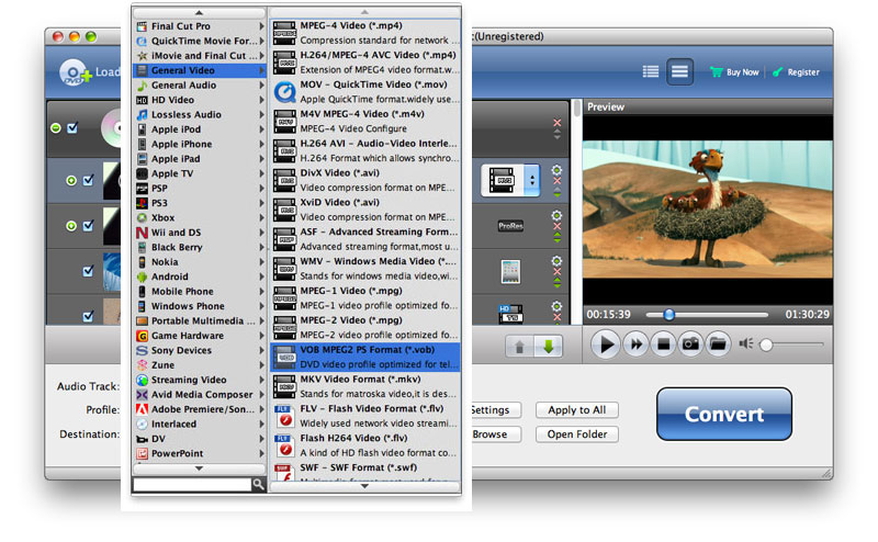 Movie zealots may have rows and rows DVD discs at home. As well all know, DVD discs are easily to get damaged or lost. Have you ever thought to back up your favorite DVD movies on Mac so that you can protect DVD movies and enjoy them on your Mac, not only enjoy them on the DVD players? Now you can rip DVD to VOB to back up your DVD discs, and you can still enjoy the best quality DVD movies. VOB, also known as Video Object, is the container format in DVD-Video media. VOB can contain digital video, digital audio, subtitles, DVD menus and navigation contents multiplexed together into a stream format.